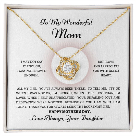 To My Wonderful Mom, Love Knot Necklace and earring sets--from Son