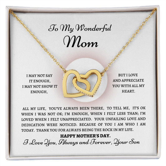 To my Wonderful Mom, Interlocking Heart Necklace--from Son